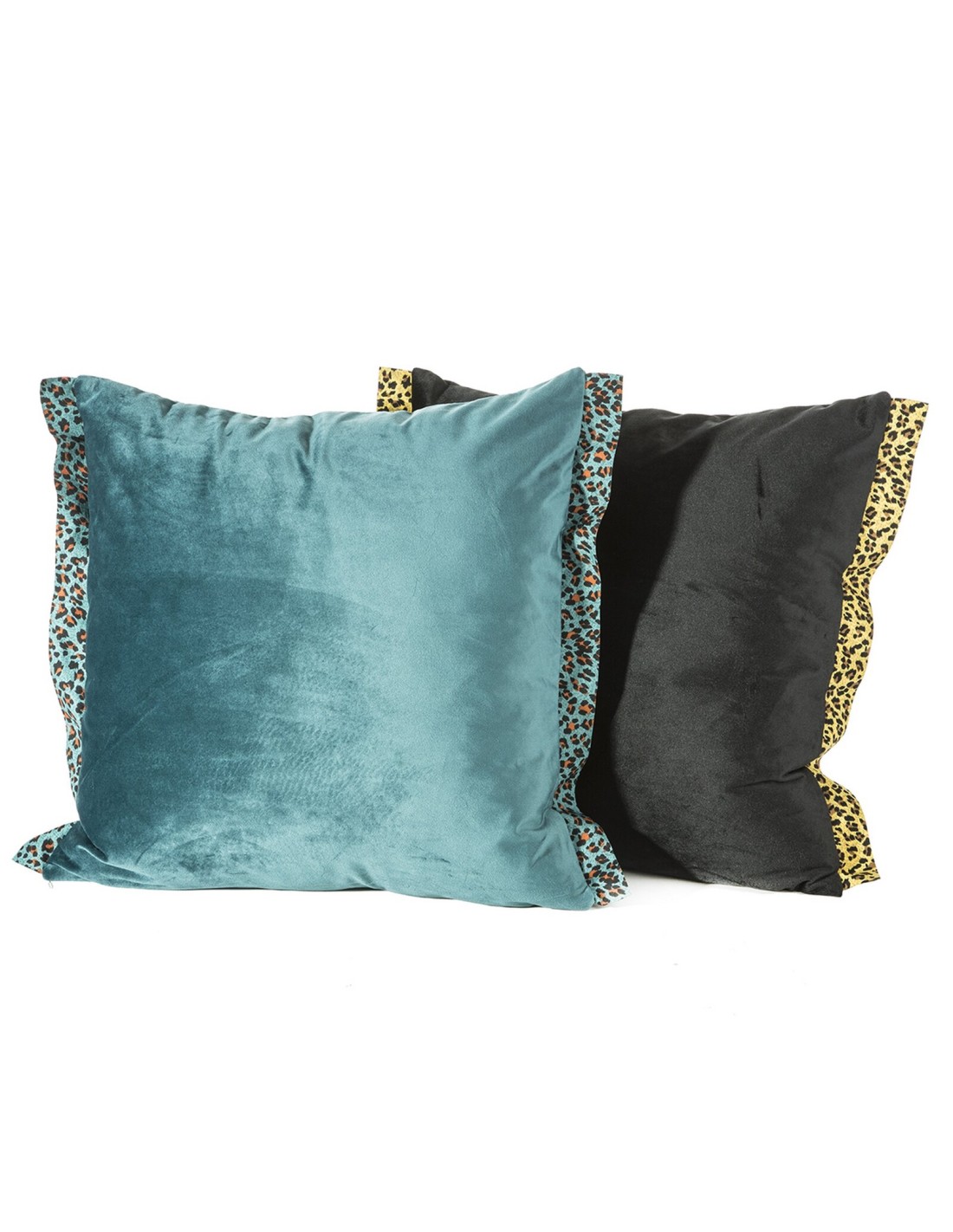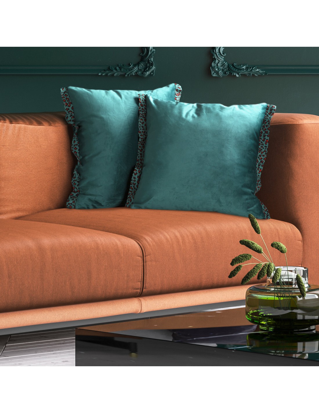 Welwetowa poszewka z efektownym zdobieniem z tkaniny w cętki szerokość: 45 cm, długość: 45 cm, kolor: ciemnoturkusowy, Gramatura: 210 GSM, Skład: 100% poliester