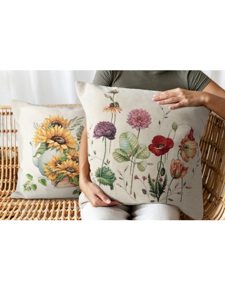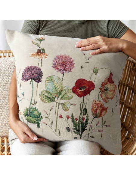 Poszewka gobelinowa szerokość: 45 cm, długość: 45 cm, kolor: szarobeżowy, Skład: 63% poliester, 34% bawełna, 3% akryl