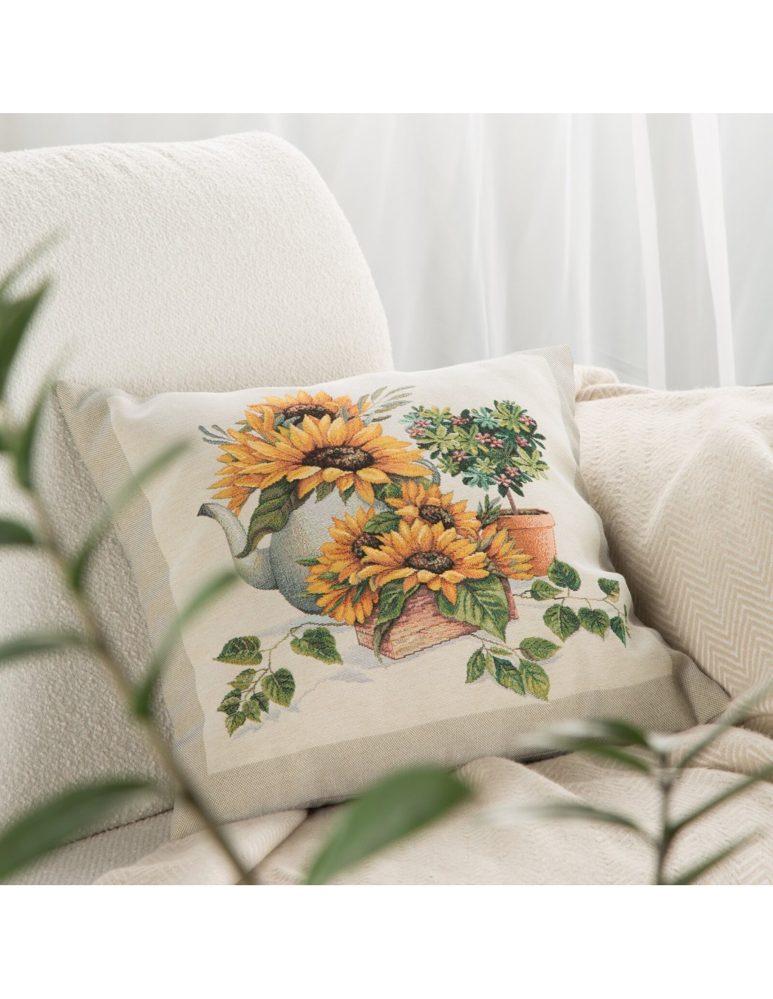 Poszewka gobelinowa szerokość: 45 cm, długość: 45 cm, kolor: naturalny, Gramatura: 410 GSM, Skład: 63% poliester, 34% bawełna, 3% akryl