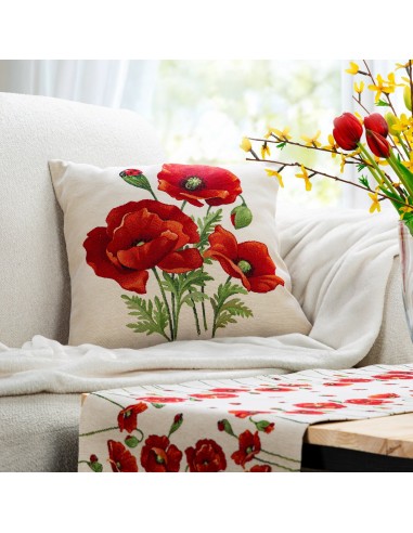Poszewka gobelinowa szerokość: 45 cm, długość: 45 cm, kolor: czerwony, Gramatura: 400 GSM, Skład: 68% bawełna, 32% poliester