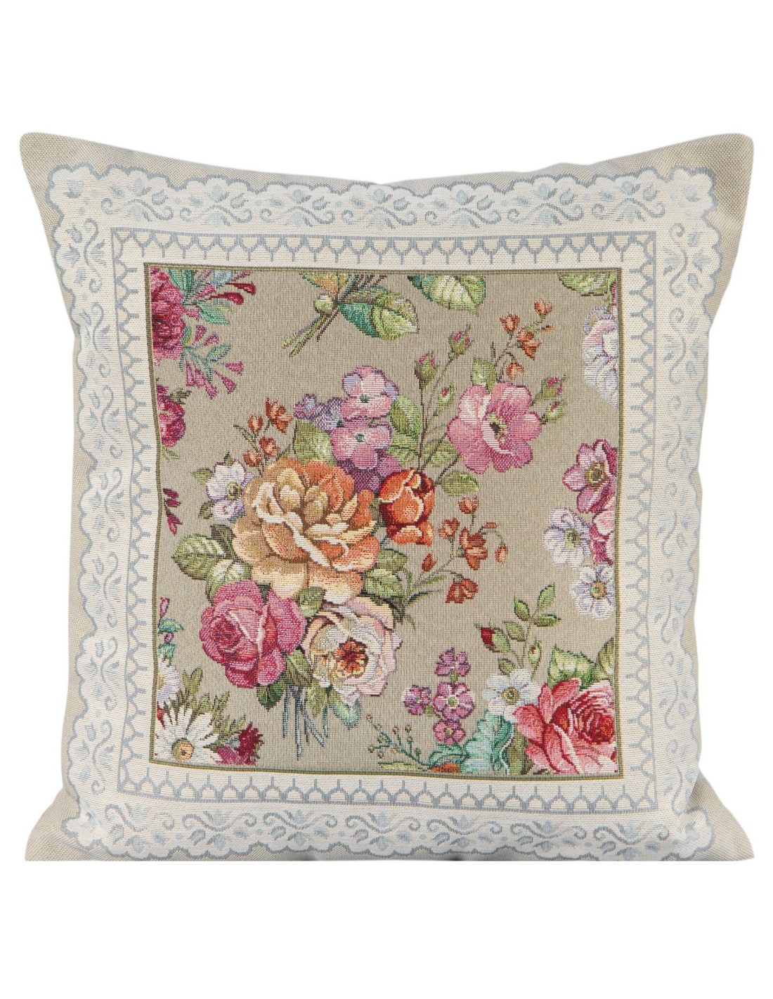 Poszewka gobelinowa szerokość: 45 cm, długość: 45 cm, kolor: oliwkowy, Skład: 63% poliester, 34% bawełna, 3% akryl