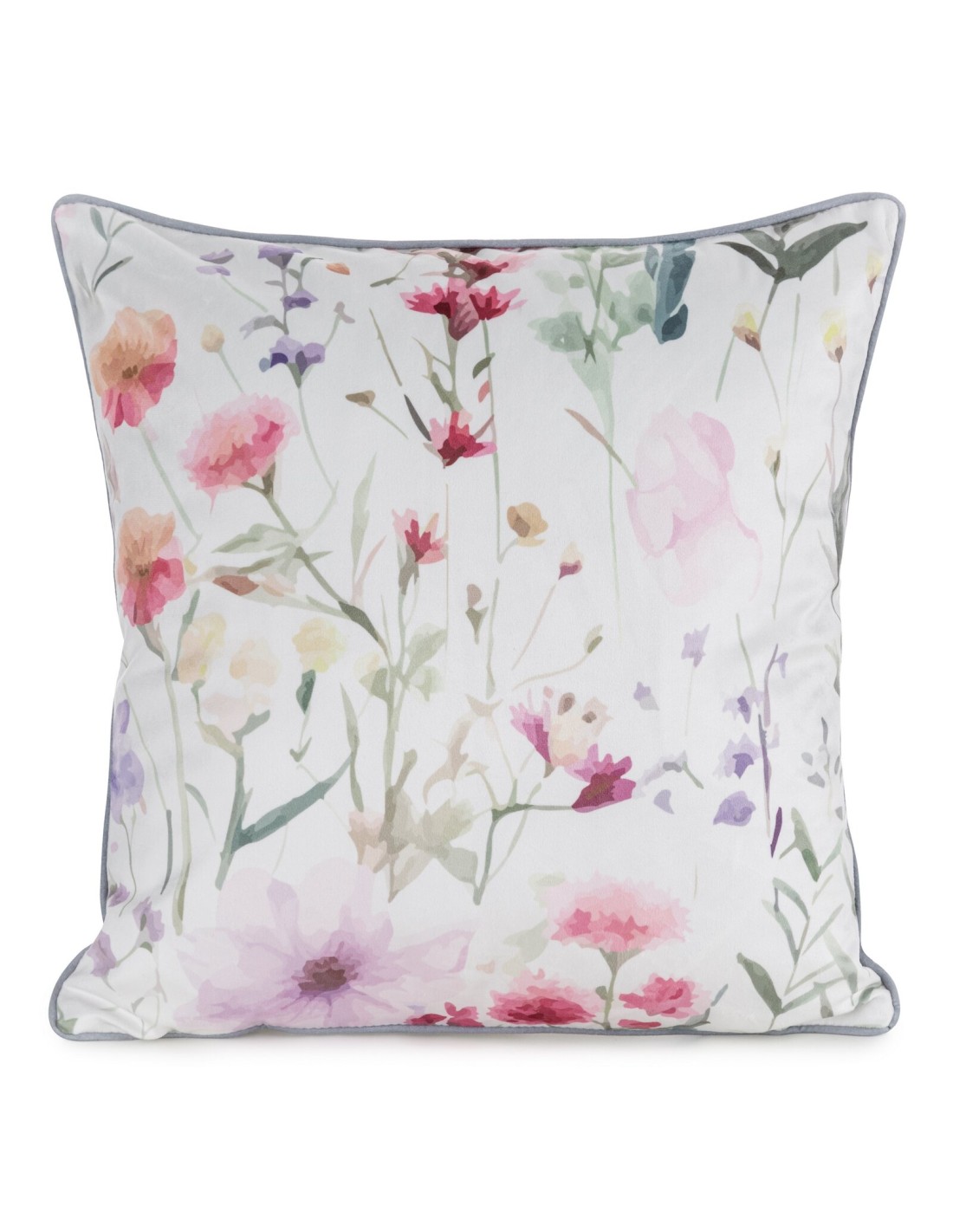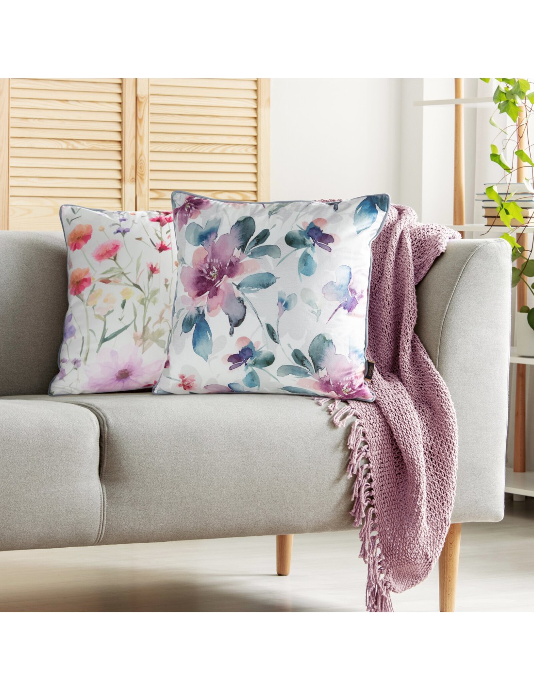 Ozdobna poszewka z nadurkowanym motywem kwiatowym szerokość: 45 cm, długość: 45 cm, kolor: biały, Gramatura: 190 GSM, Skład: 100% poliester