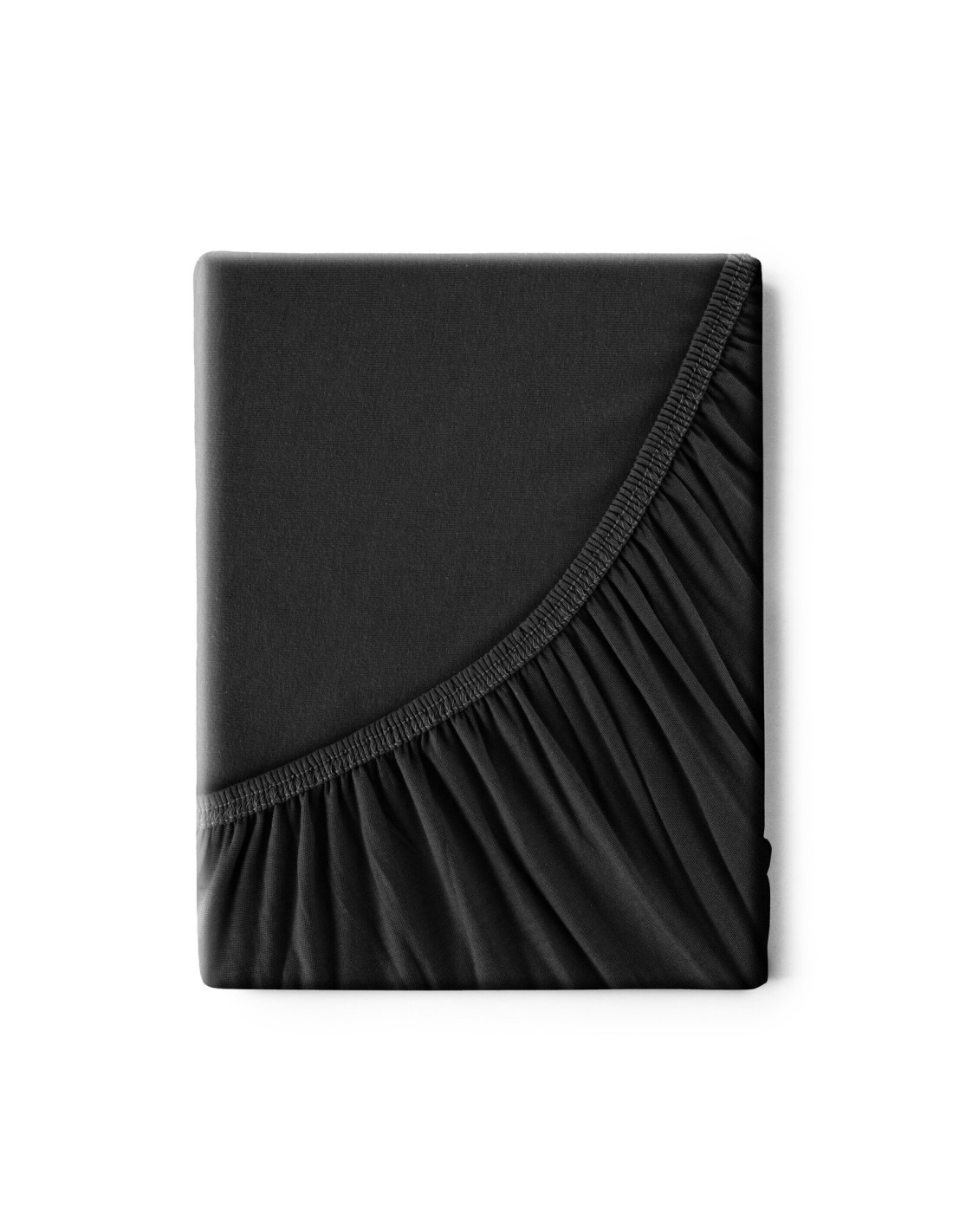 Bawełniane prześcieradło dżersejowe z gumką szerokość: 90 cm, długość: 200 cm, kolor: czarny, Gramatura: 140 GSM, Skład: 100% bawełna