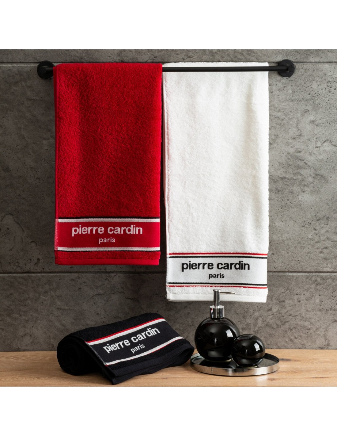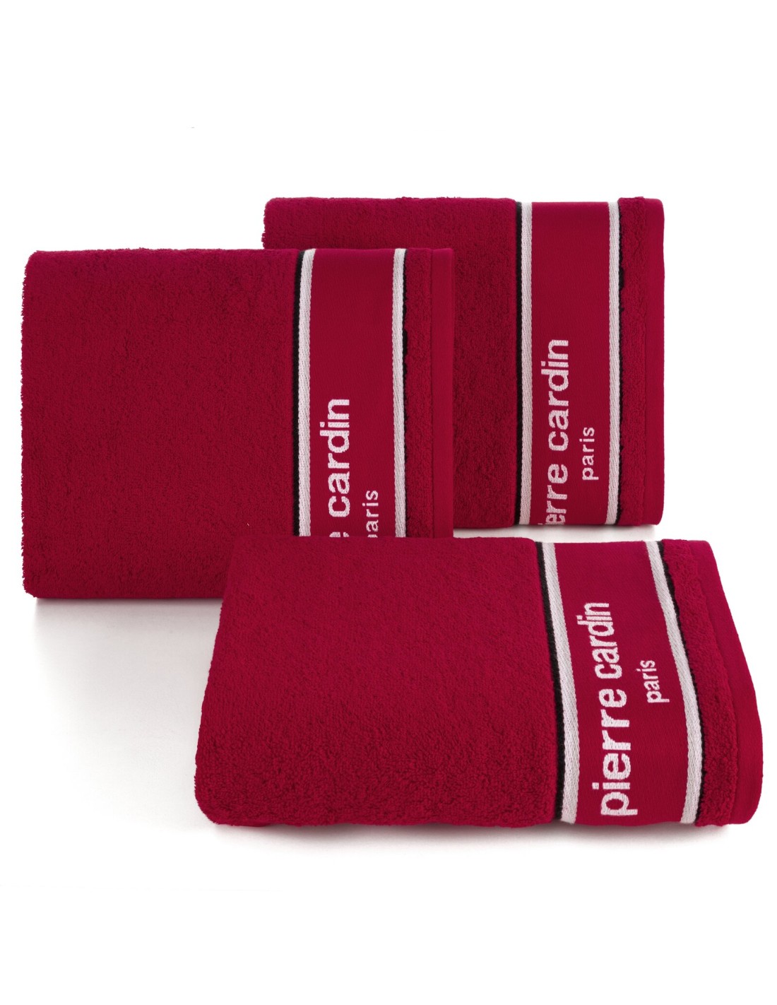 Ręcznik z kolekcji pierre cardin szerokość: 70 cm, długość: 140 cm, kolor: czerwony, Gramatura: 450 GSM, Skład: 100% bawełna; cześć ozdobna: 64% bawełna, 36% poliester