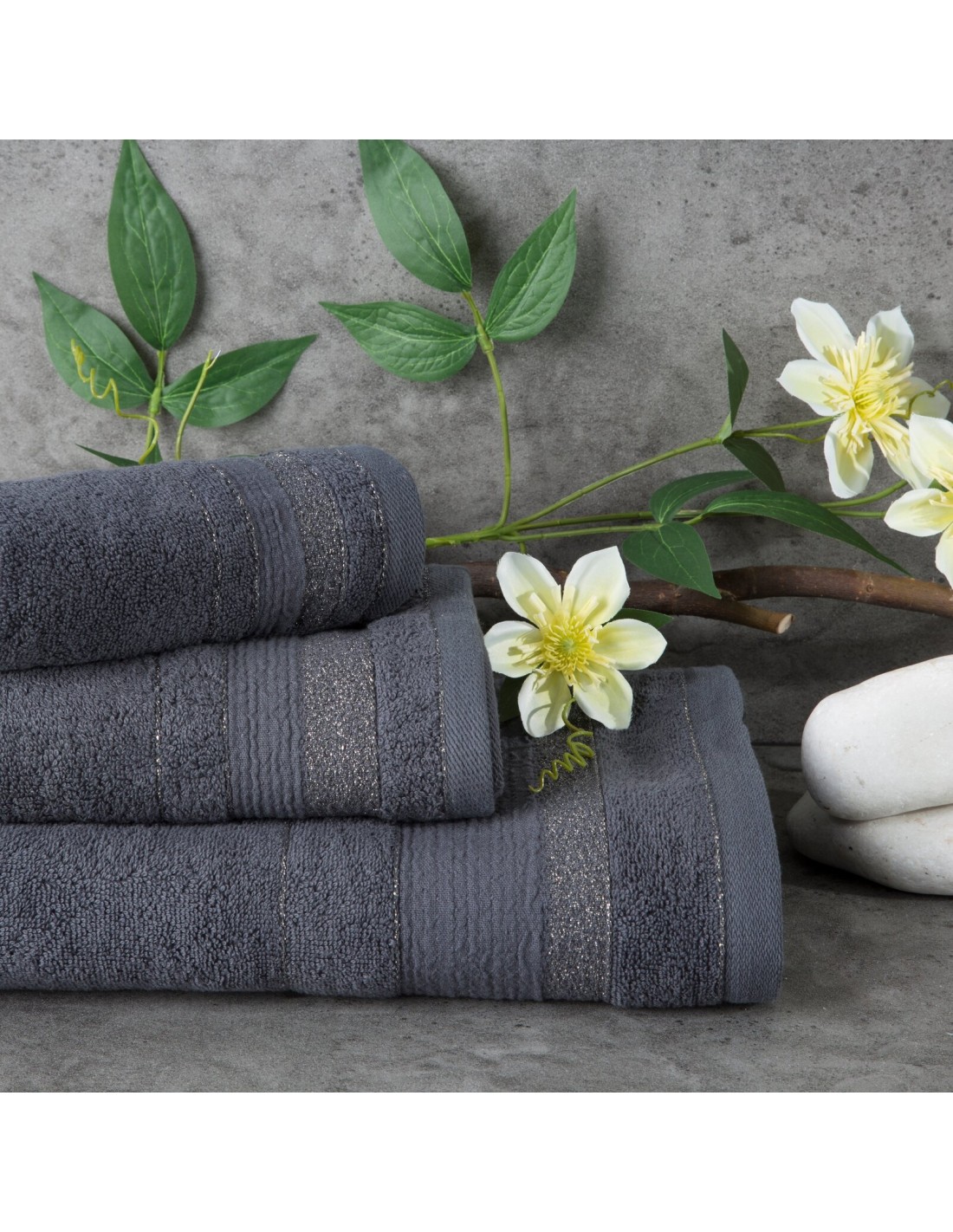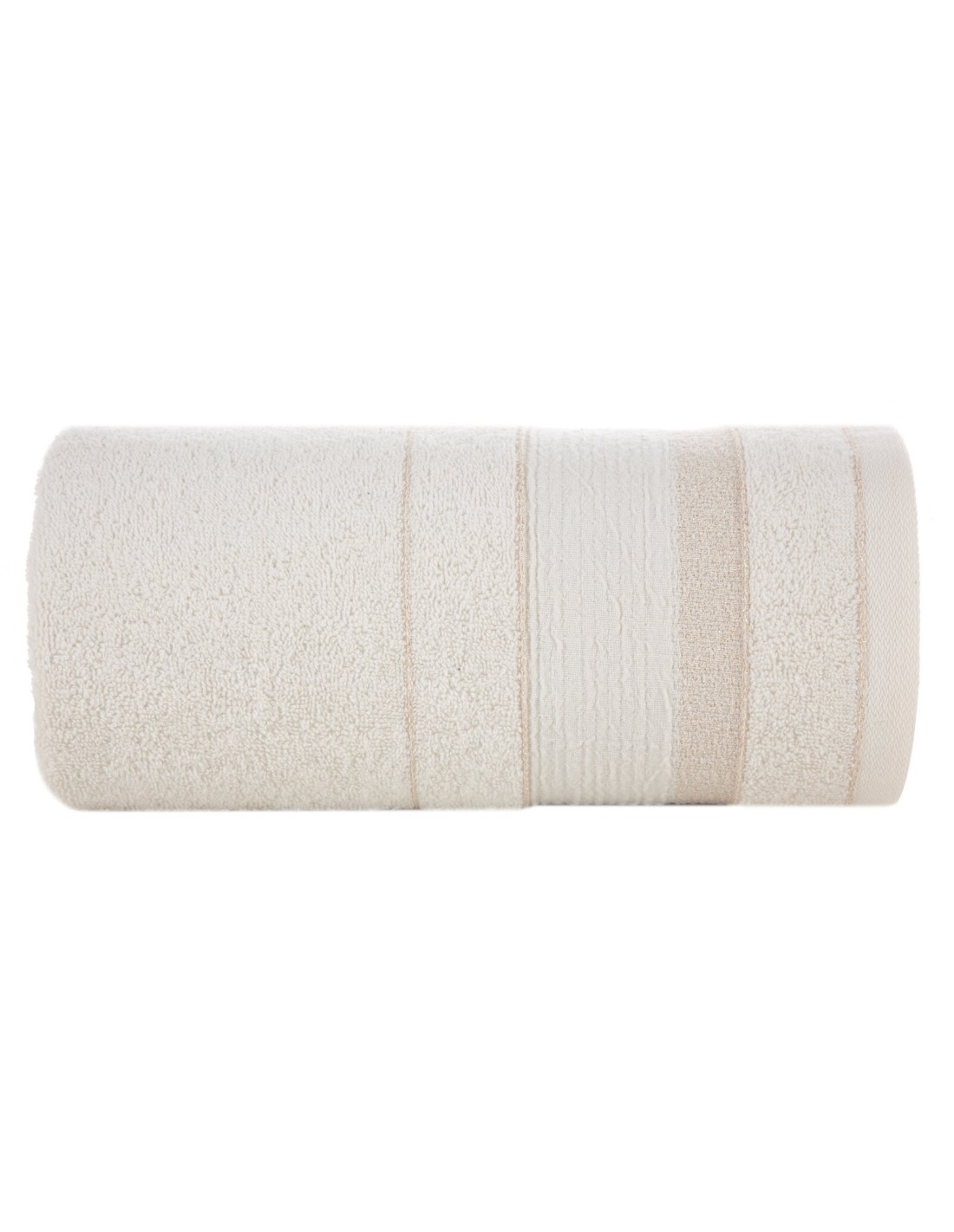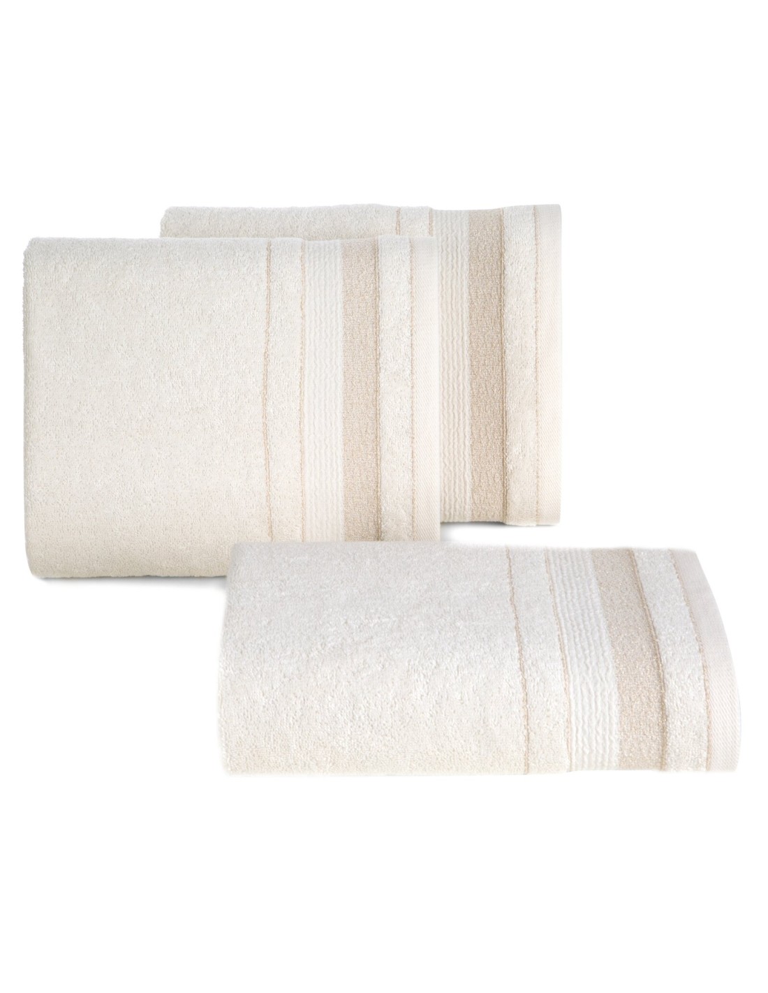 Ręcznik bawełniany z żakardową bordiurą z błyszczącą nicią szerokość: 30 cm, długość: 50 cm, kolor: kremowy, Gramatura: 500 GSM, Skład: 100% bawełna; część ozdobna: 95% bawełna, 5% poliester