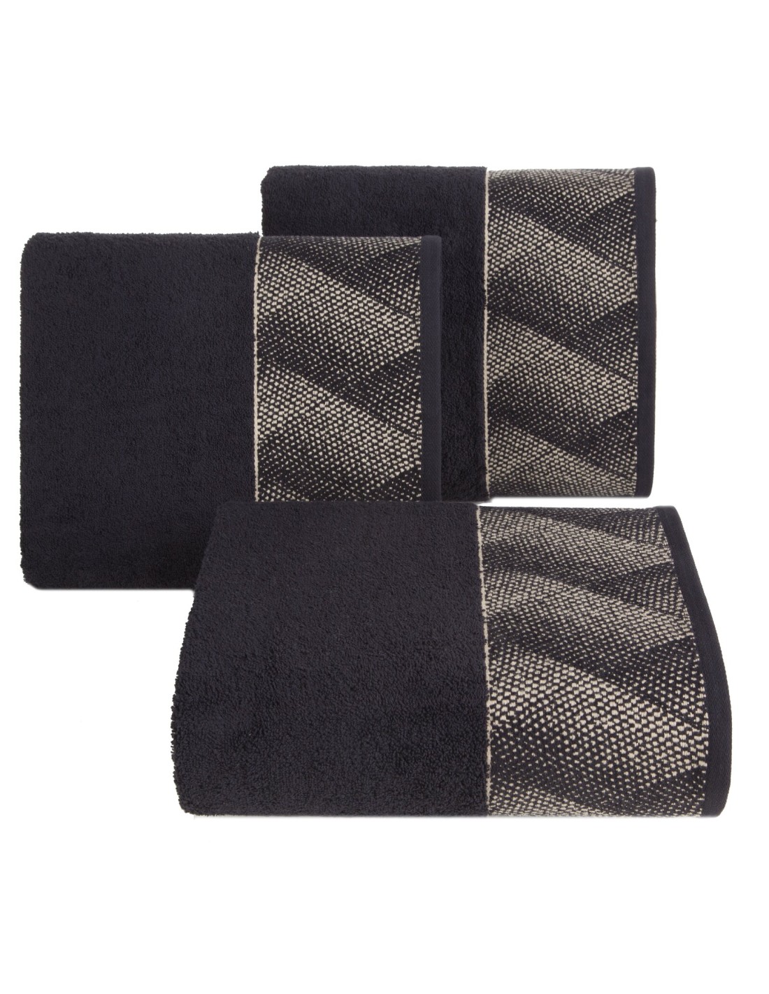 szerokość: 70 cm, długość: 140 cm, kolor: czarny, Gramatura: 500 GSM, Skład: 100% bawełna; część ozdobna: 97% bawełna, 3% poliester