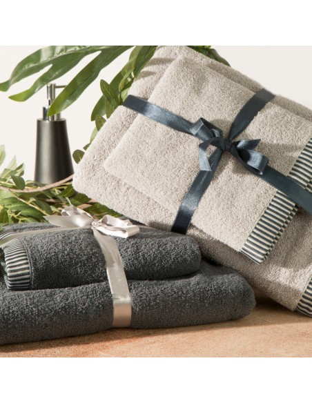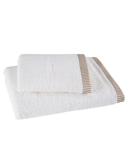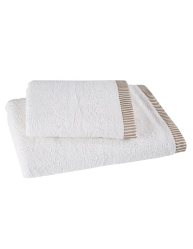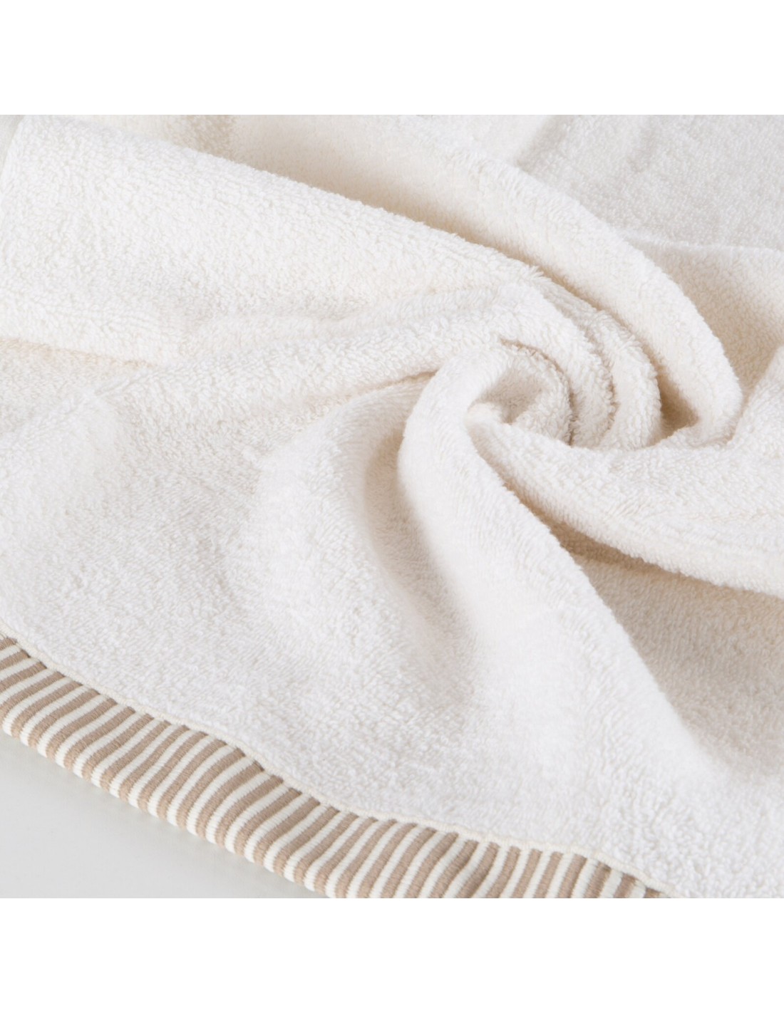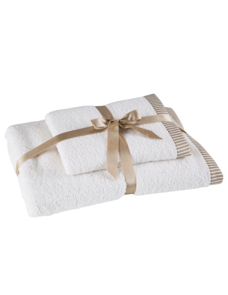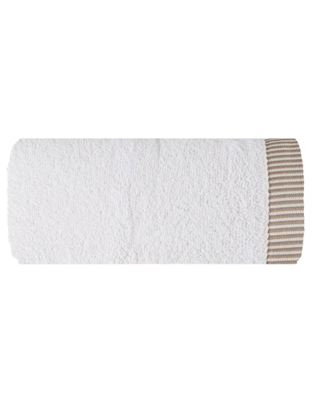 Komplet ręczników z ozdobną bordiurą w paseczki szerokość: 36 cm, długość: 25 cm, kolor: kremowy, Gramatura: 450 GSM, Skład: 100% bawełna; część ozdobna: 95% bawełna, 5% poliester