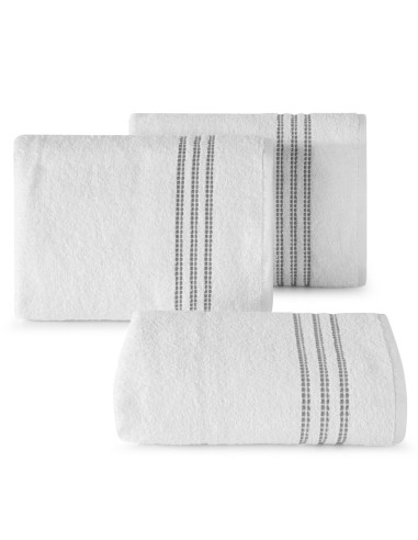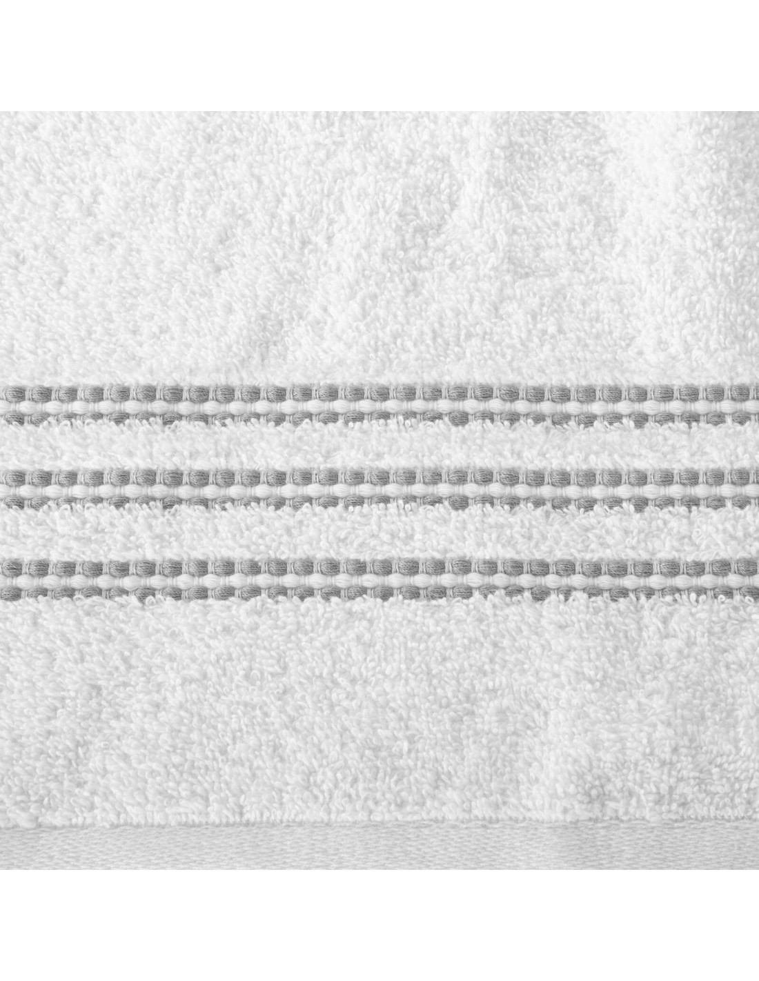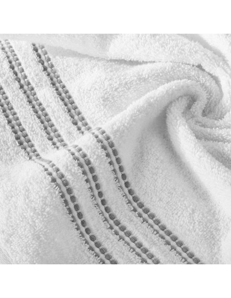 szerokość: 70 cm, długość: 140 cm, kolor: biały, Gramatura: 480 GSM, Skład: 100% bawełna; część ozdobna: 94% bawełna, 6% poliester
