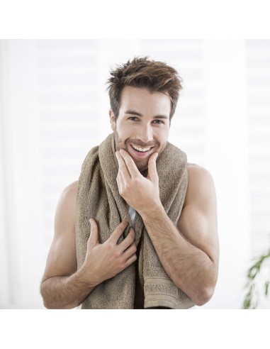 Ręcznik z ozdobną bordiurą w pasy szerokość: 50 cm, długość: 90 cm, kolor: kremowy, Gramatura: 500 GSM, Skład: 100% bawełna
