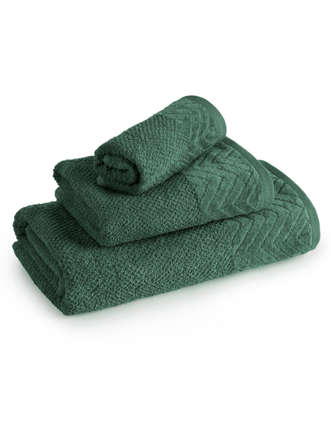 Elegancki ręcznik z delikatnej i bardzo chłonnej tkaniny frotte, jednokolorowy. Krawędzie zdobione subtelną bordiurą z welwetu. Łatwy w praniu, trwałe kolory. szerokość: 30 cm, długość: 50 cm, kolor: zielony, Gramatura: 500 GSM, Skład: 100% bawełna