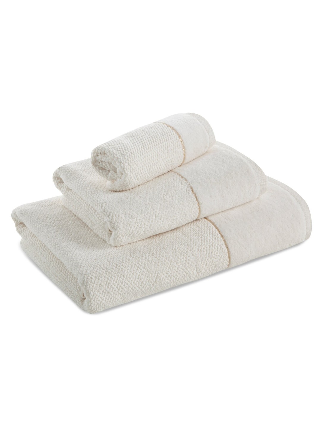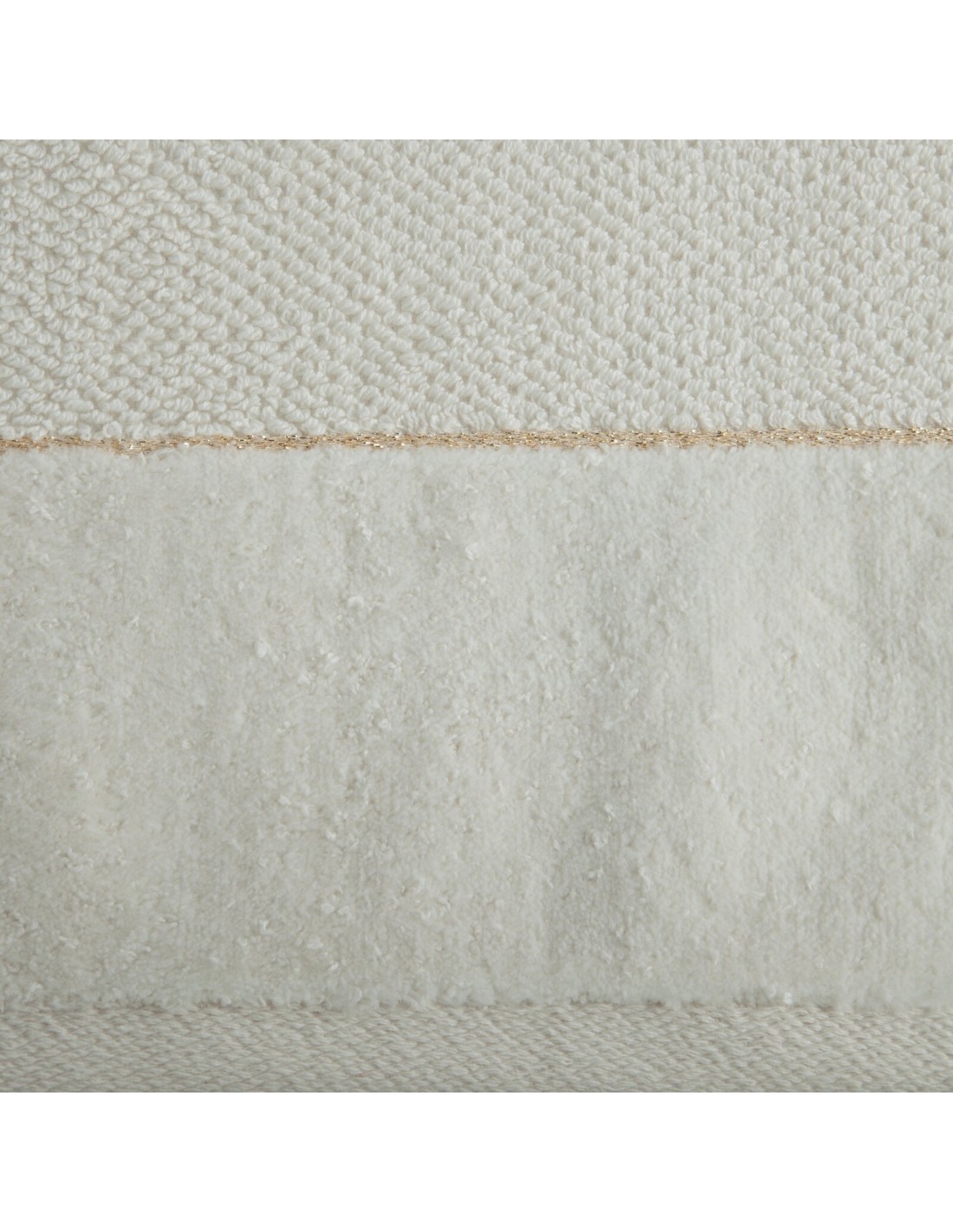 Ręcznik bawełniany z welurową bordiurą i błyszczącą nicią szerokość: 70 cm, długość: 140 cm, kolor: kremowy, Gramatura: 550 GSM, Skład: 100% bawełna; część ozdobna: 97% bawełna, 3% poliester