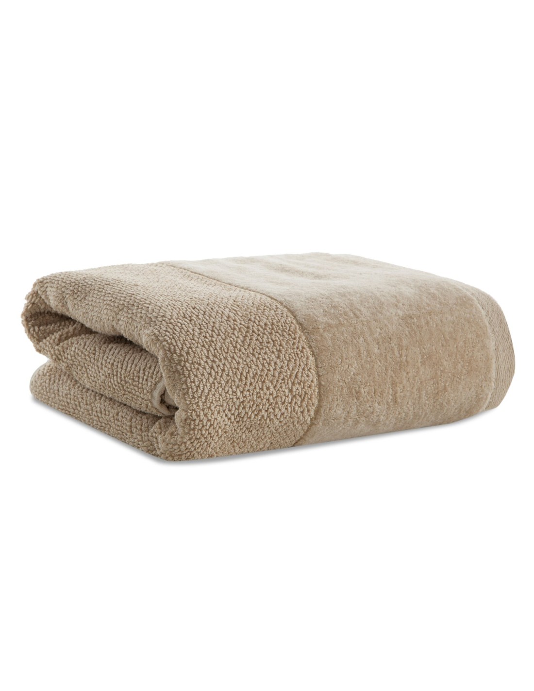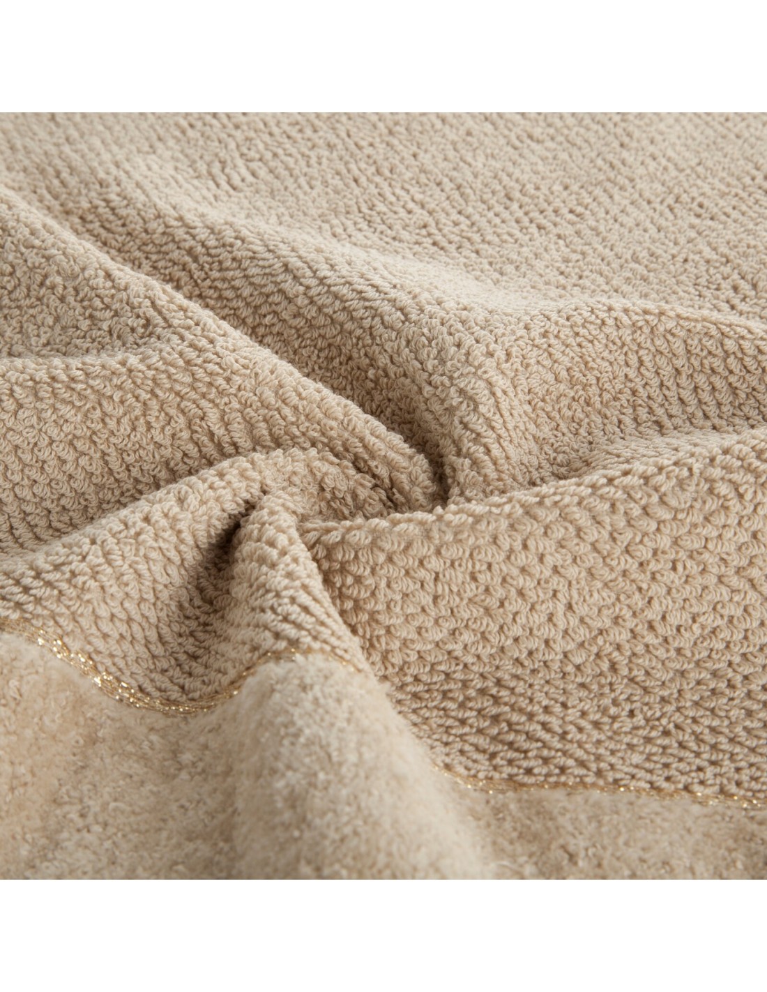 Ręcznik bawełniany z welurową bordiurą i błyszczącą nicią szerokość: 30 cm, długość: 50 cm, kolor: beżowy, Gramatura: 550 GSM, Skład: 100% bawełna; część ozdobna: 97% bawełna, 3% poliester