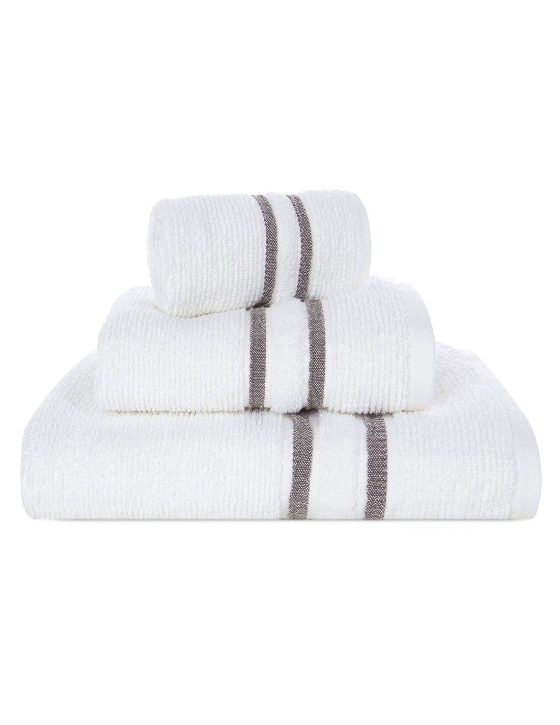 Ręcznik welurowy z prostą bordiurą i frotte ze strukturą szerokość: 70 cm, długość: 140 cm, kolor: biały, Gramatura: 500 GSM, Skład: 100% bawełna; część ozdobna: 50% poliester, 50% bawełna