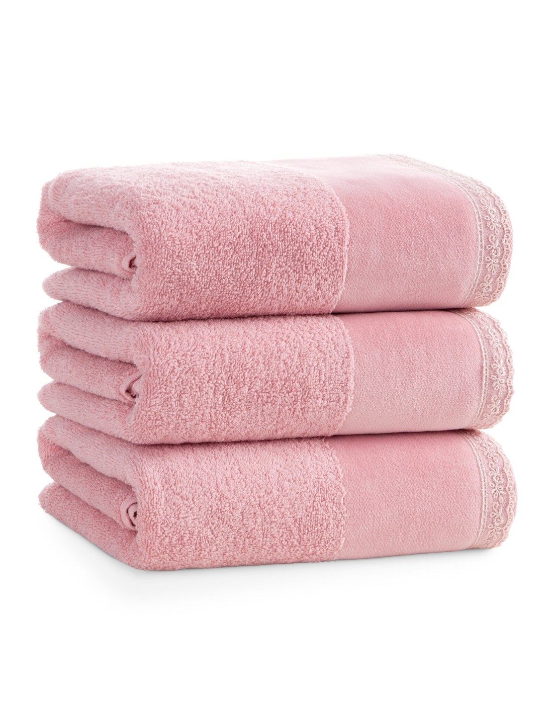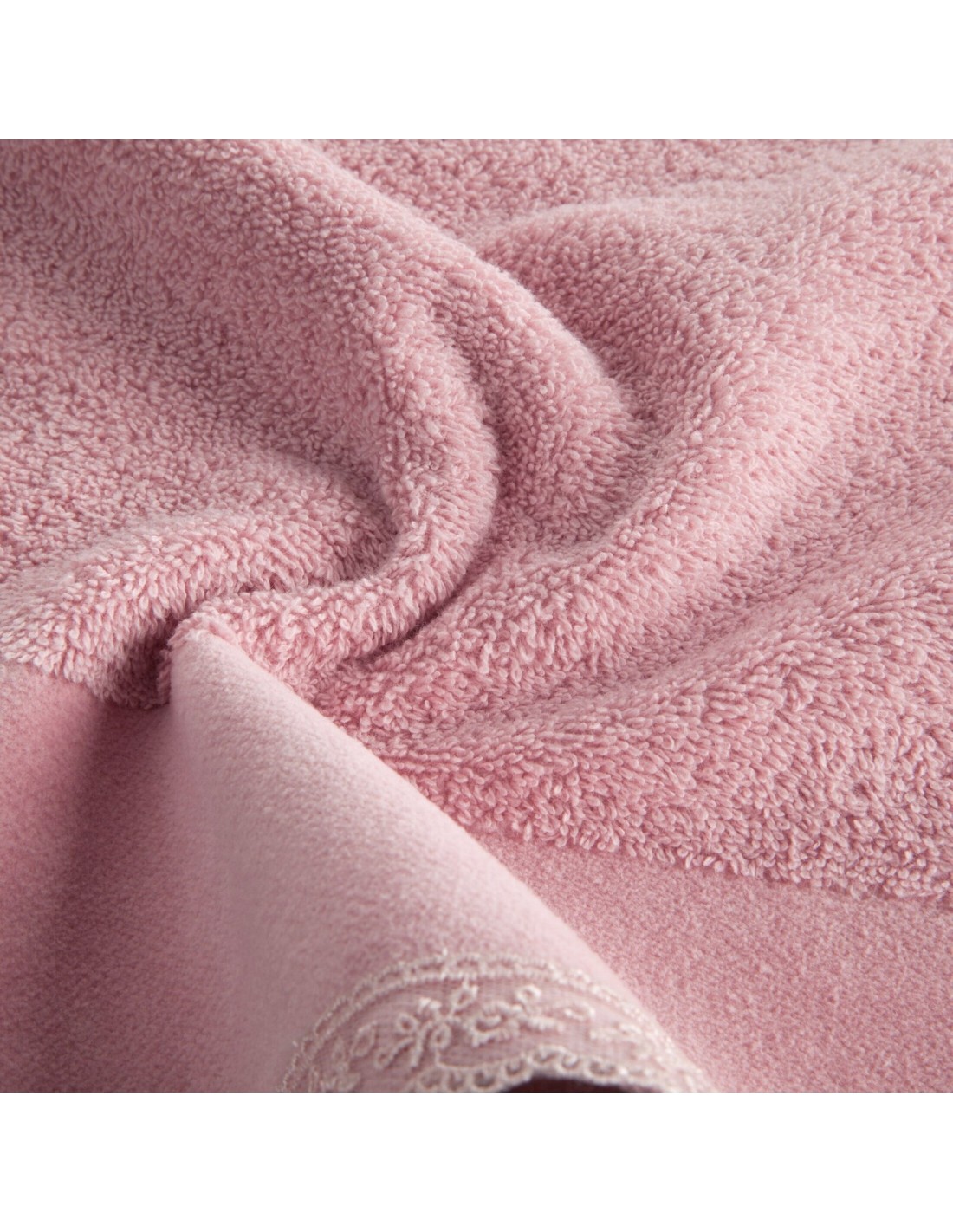 Piękny ręcznik kąpielowy z miękkiej i chłonnej bawełny frotte zdobiony na bordiurze aplikacją w formie serduszek wypełnionych różyczkami. Doskonały na prezent. szerokość: 70 cm, długość: 140 cm, kolor: różowy, Gramatura: 500 GSM, Skład: 100% bawełna; część ozdobna: 100% poliester