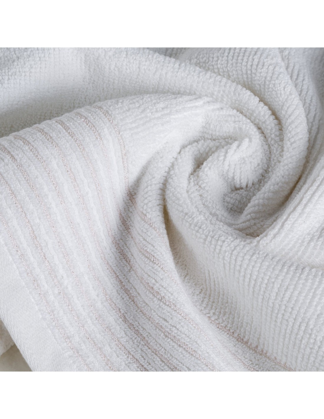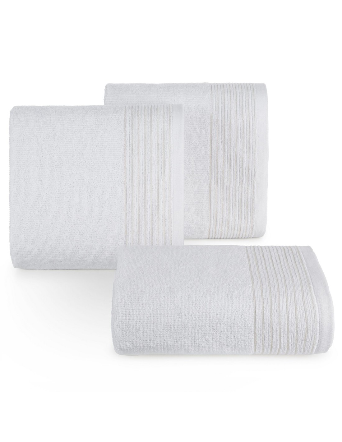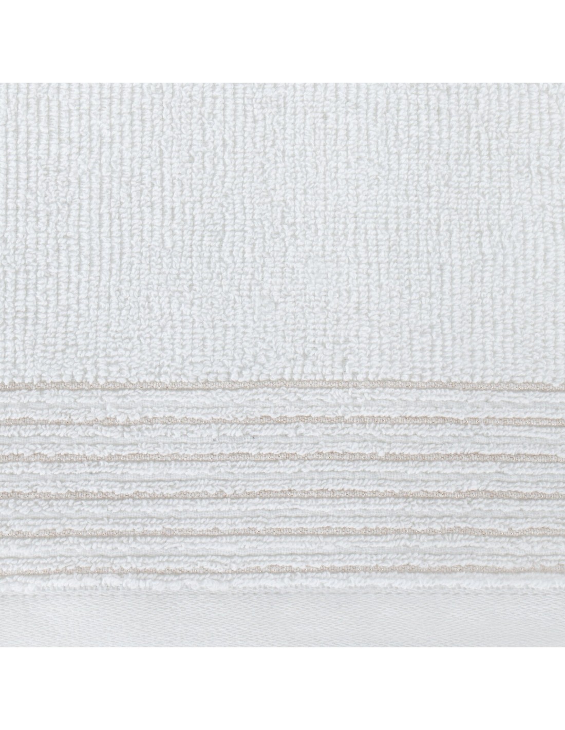 Ręcznik bawełniany z ozdobną bordiurą przetykaną błyszczącą nicią szerokość: 30 cm, długość: 50 cm, kolor: biały, Gramatura: 500 GSM, Skład: 100% bawełna; część ozdobna: 95% bawełna, 5% poliester