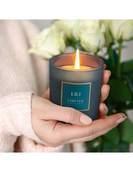 świeca o zapachu orientalno-drzewnym, czas palenia 48h szerokość: fi 11 cm, długość: 14 cm, kolor: ciemnoturkusowy