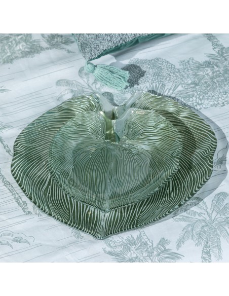 Patera dekoracyjna szerokość: 38 cm, długość: 34 cm, kolor: zielony, Skład: 100% szkło