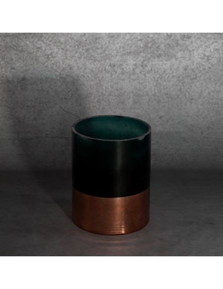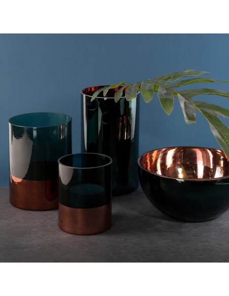 świecznik dekoracyjny szerokość: fi 12 cm, długość: 15 cm, kolor: szałwiowy, Skład: 100% szkło