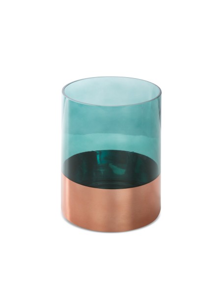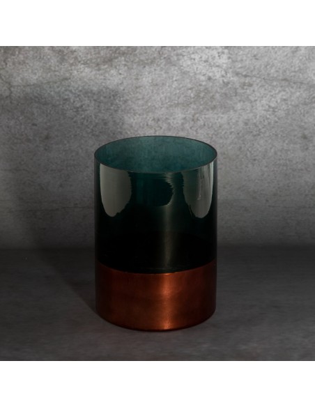 świecznik dekoracyjny szerokość: fi 15 cm, długość: 20 cm, kolor: szałwiowy, Skład: 100% szkło