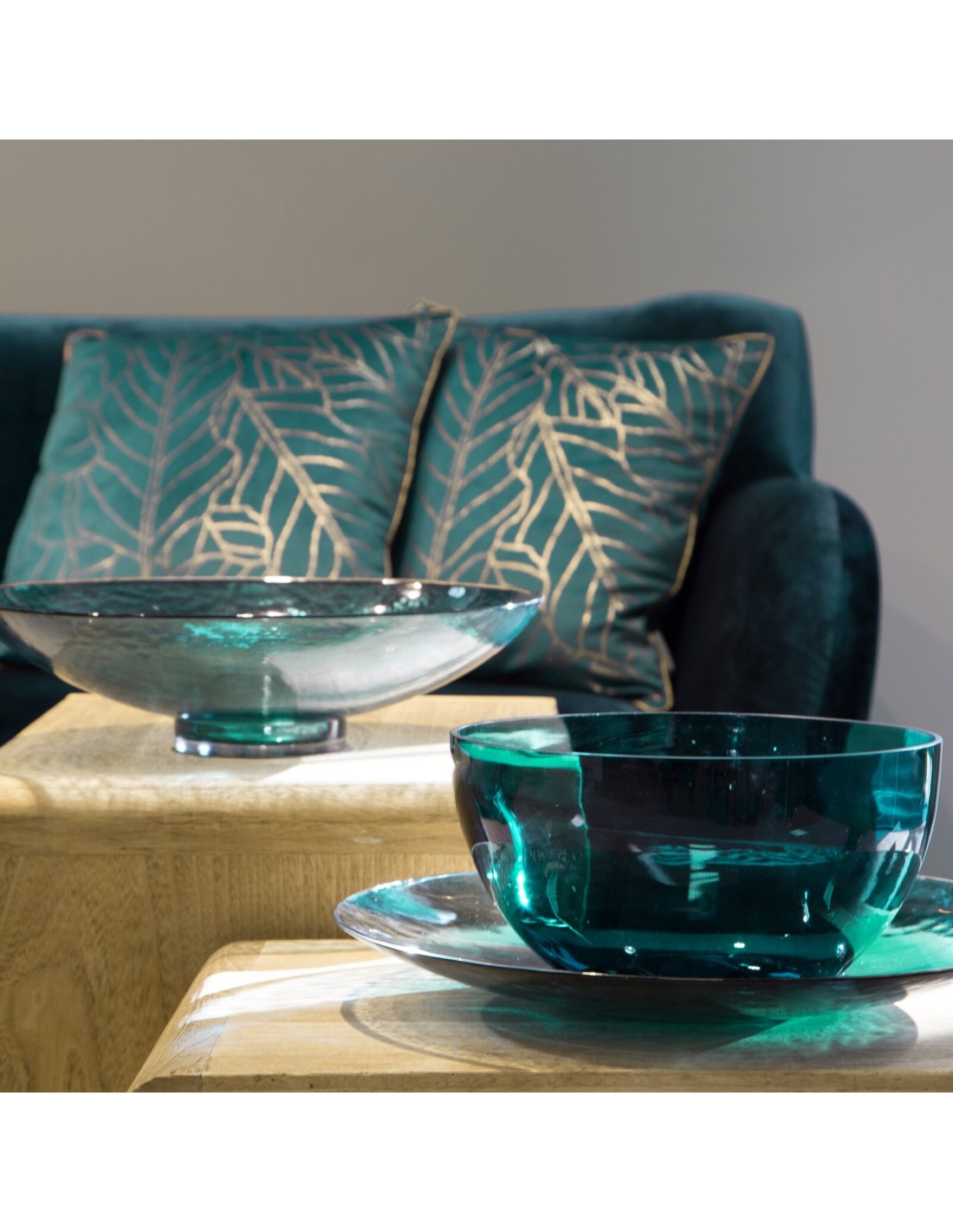 Patera dekoracyjna szerokość: fi 37 cm, długość: 4 cm, kolor: turkusowy, Skład: 100% szkło