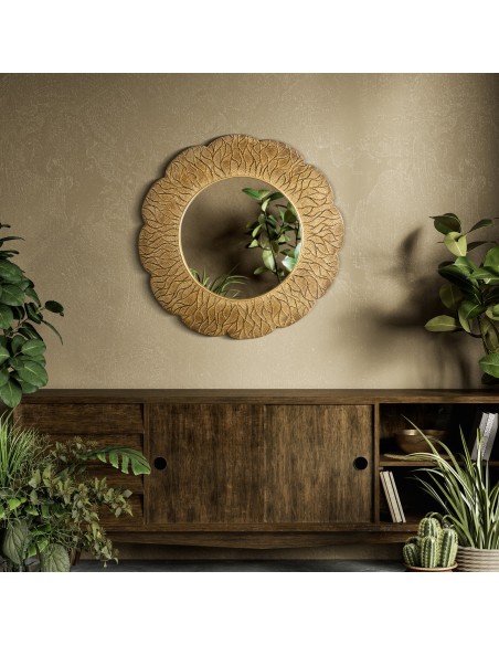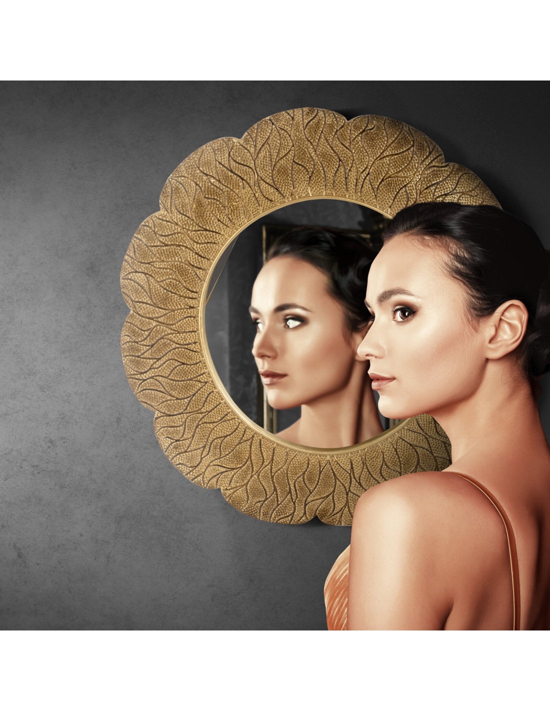 Lustro dekoracyjne szerokość: fi 70 cm, długość: 5 cm, kolor: złoty, Skład: 50% żywica poliestrowa, 50% szkło