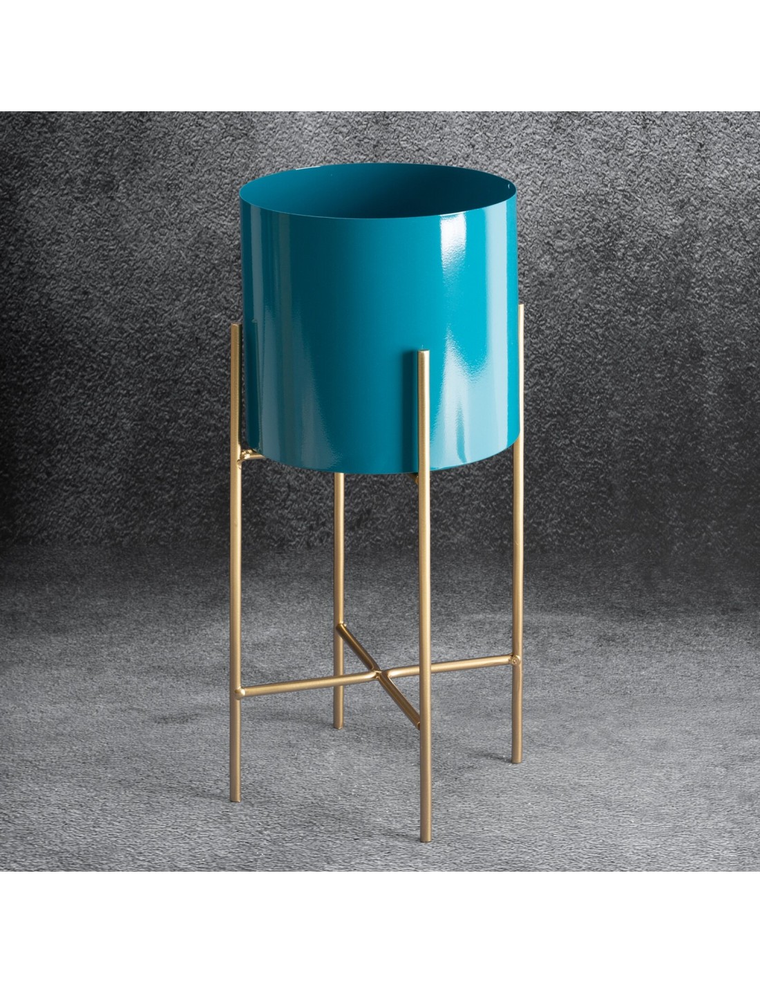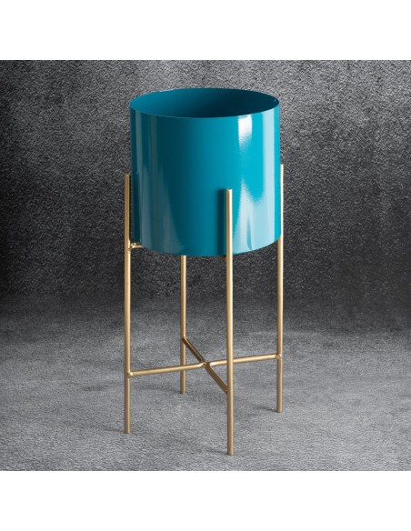 Donica dekoracyjna szerokość: 18 cm, długość: 18 cm, kolor: turkusowy, Skład: metal