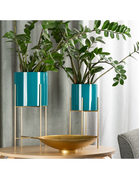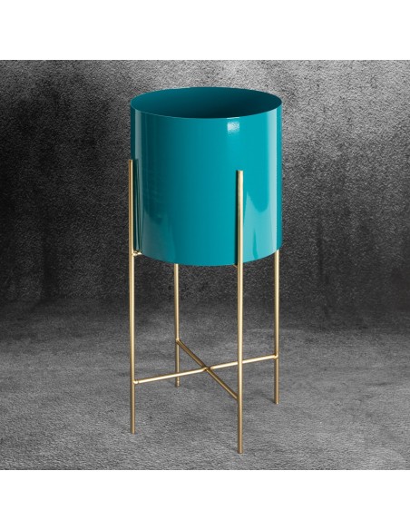 Donica dekoracyjna szerokość: 22 cm, długość: 22 cm, kolor: turkusowy, Skład: metal