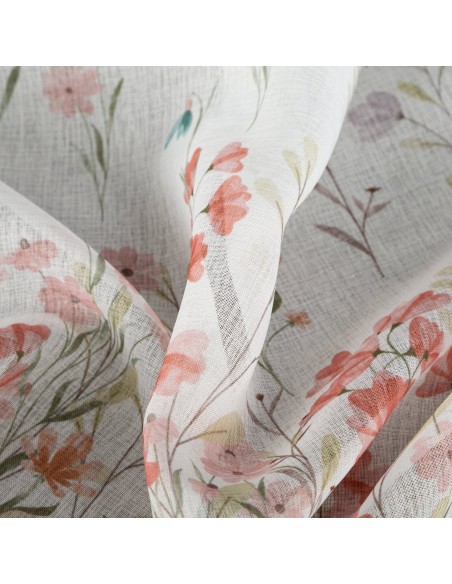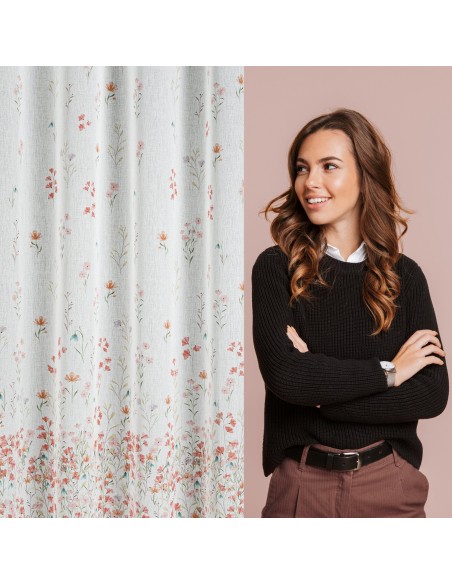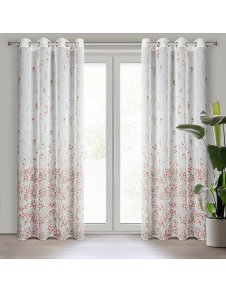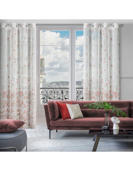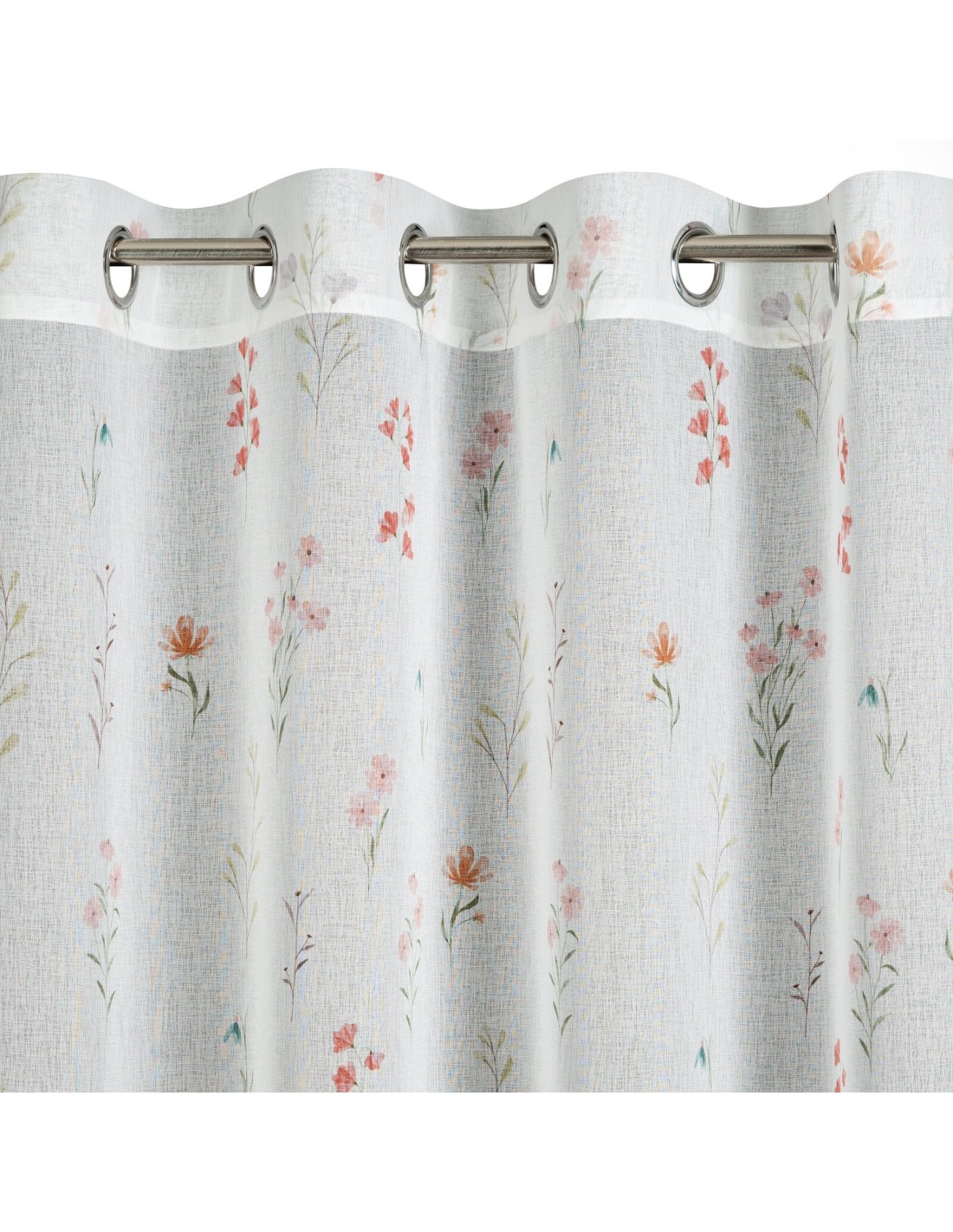 Zasłona gotowa z motywem kwiatowym szerokość: 140 cm, długość: 250 cm, kolor: biały, Gramatura: 75 GSM, Skład: 100% poliester