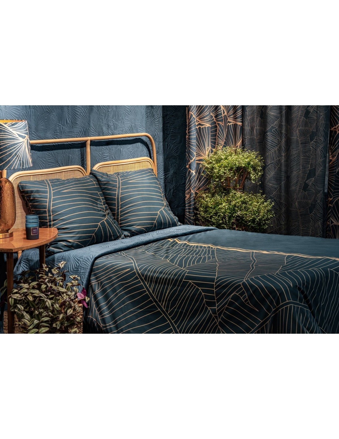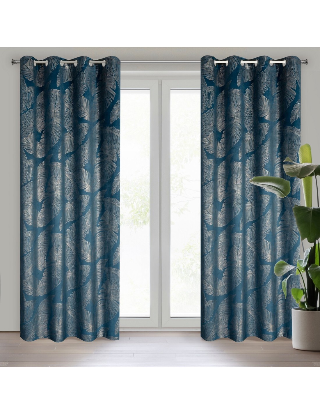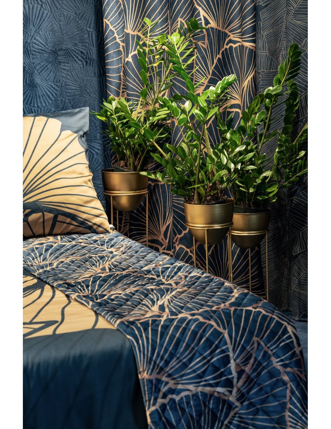 Zasłona welwetowa z szampańskim nadrukiem szerokość: 140 cm, długość: 250 cm, kolor: granatowy, Gramatura: 250 GSM, Skład: 100% poliester