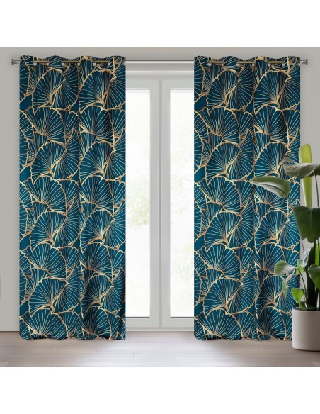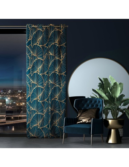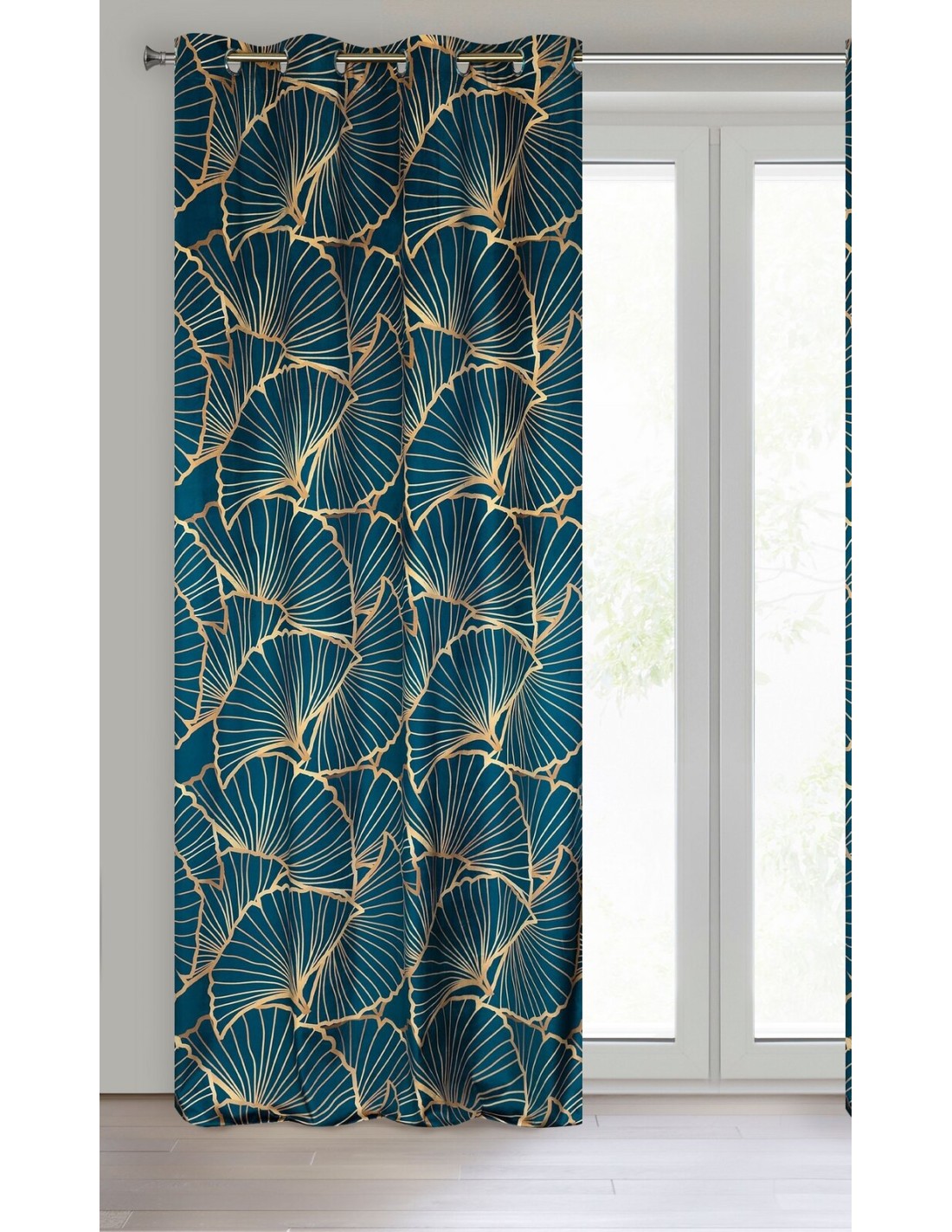 Zasłona welwetowa z nadrukiem szerokość: 140 cm, długość: 250 cm, kolor: granatowy, Gramatura: 200 GSM, Skład: 100% poliester