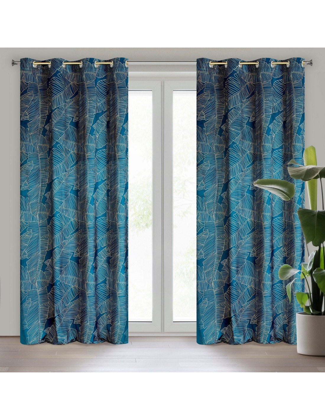 Zasłona welwetowa z nadrukiem szerokość: 140 cm, długość: 250 cm, kolor: granatowy, Gramatura: 200 GSM, Skład: 100% poliester