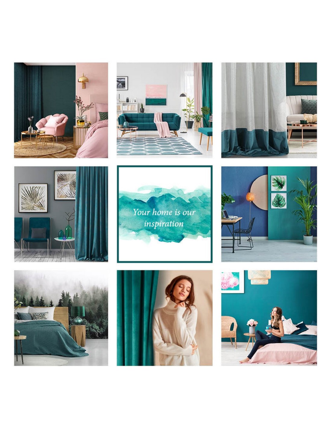 Zasłona welwetowa ze złotym nadrukiem szerokość: 140 cm, długość: 300 cm, kolor: ciemnoturkusowy, Gramatura: 200 GSM, Skład: 100% poliester
