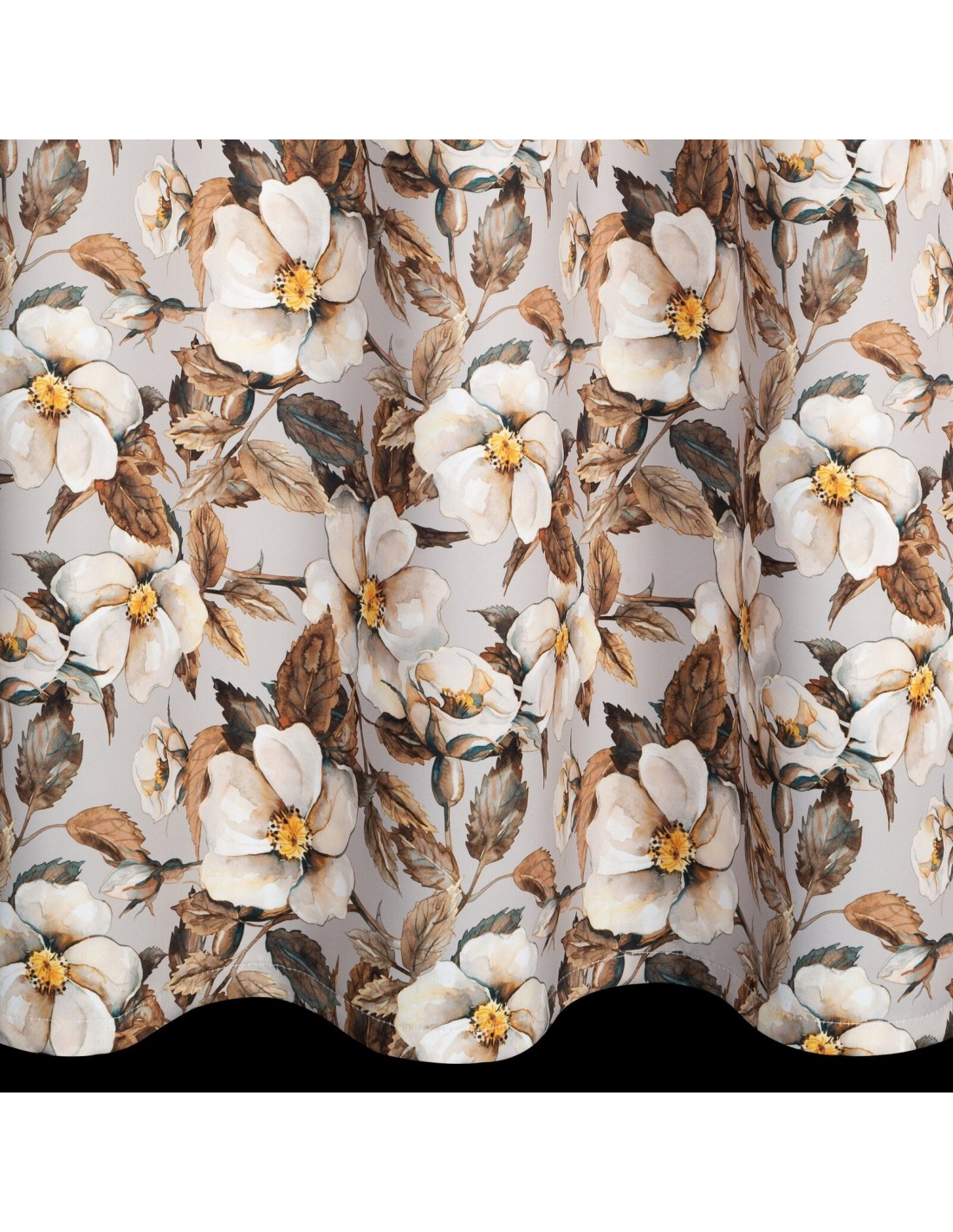 Zasłona zaciemniająca z kwiatowym nadrukiem szerokość: 140 cm, długość: 250 cm, kolor: beżowy, Gramatura: 210 GSM, Skład: 100% poliester