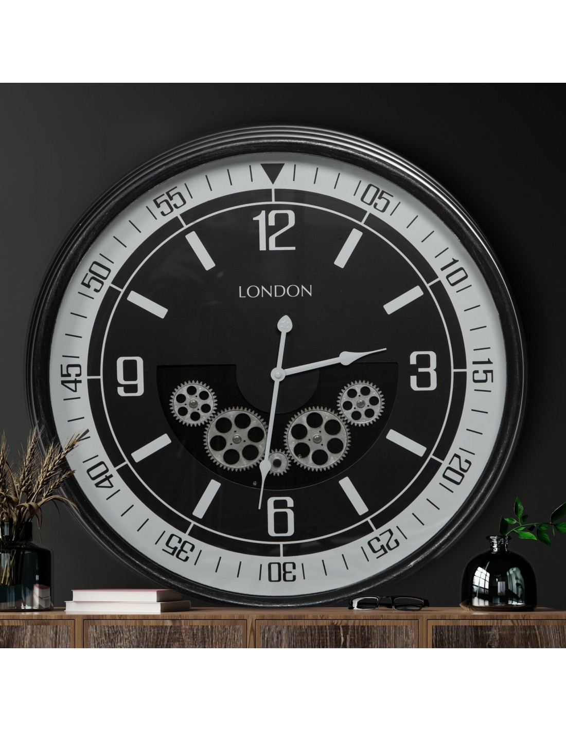 Dekoracyjny zegar ścienny - ruchomy mechanizm szerokość: O 59 cm, długość: 11 cm, kolor: czarny, Skład: szkło, żelazo, mdf, plastik , Zasilanie: BATERIA 2xAA, 1.5V